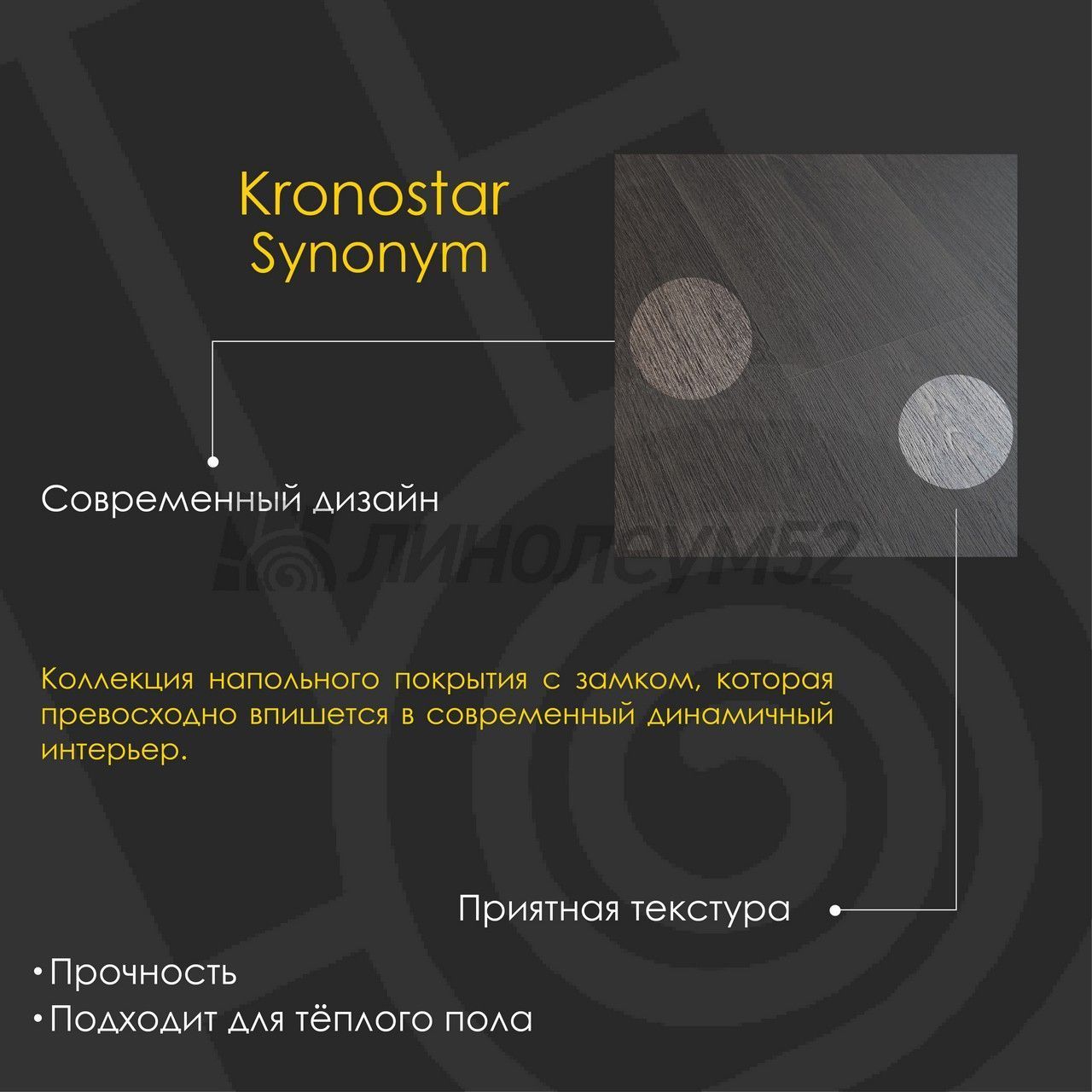 Ламинат Kronostar коллекция Synonym – напольное покрытие 33 класса износостойкости, в котором сочетаются экономичность и высокое качество. Поверхность ламината отлично передает текстуру натурального дерева. Благодаря системе Aquastop замок устойчив к воздействию влаги в течение 25 часов. Ламинат Kronostar Synonym будет служить верой и правдой, не теряя свой облик, Создавая уют и красоту, где каждый миг — твоя жизнь и стиль...