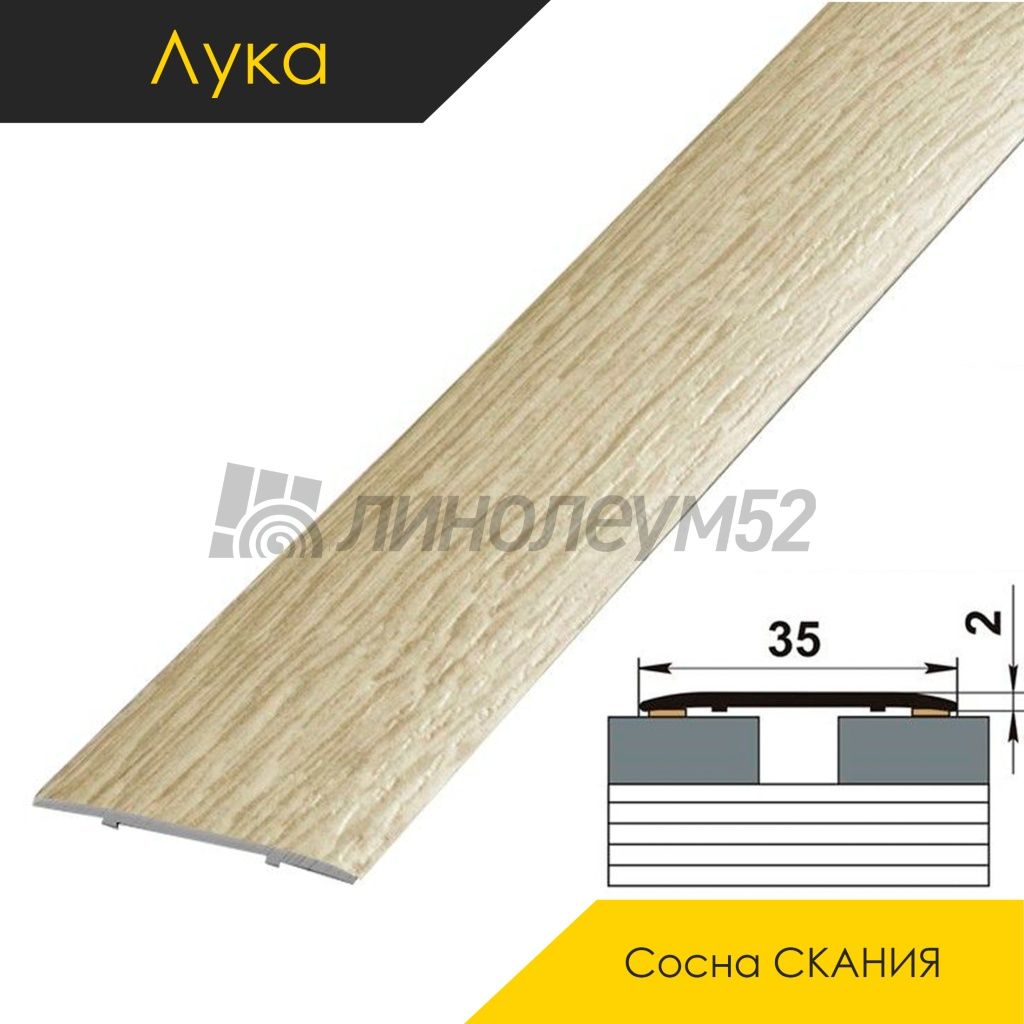 Ламинированные алюминиевые пороги - МЕЖКОМНАТНЫЕ ПОРОГИ Напольный порог - ЛУКА ЛС-35 / СОСНА СКАНИЯ 4043 от Luke Коллекция:: ЛС 35 - Лука, Торговая марка:: Luke, Тип товара:: Пороги - Напольные, Морозостойкость:: Присутствует, Допустимые зоны применения:: Универсальные зоны, Страна производитель:: Россия, Тип крепления: Основание на клею, Вид порога: Пороги - Алюминий, Возможная длина, мм: 1350 / 1800 / 900, Возможная ширина, мм: 35.00, Уникальные свойства:: Большой выбор цветов / Декоративный элемент / Крепёж в комплекте идёт / Продажа товара отпускается в упаковках / Экономичный выбор для покупателей, Повышенная износоустойчивость,
