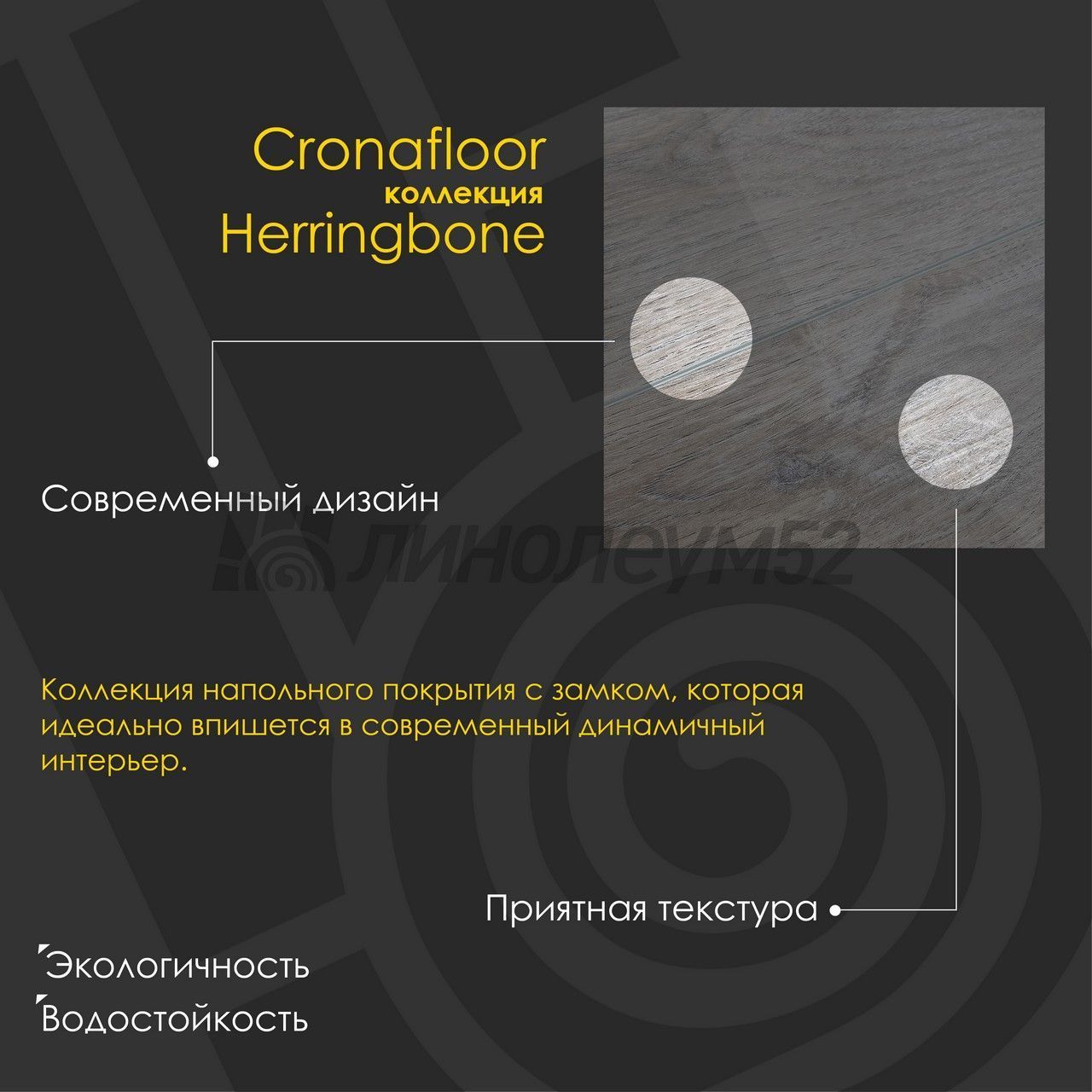 Водостойкий виниловый ламинат на минерально-полимерной основе "SPC" от бренда "CRONAFLOOR" ворвался в нашу жизнь. Классический стиль доски в сочетании с новейшими характеристиками не оставят без внимания наших покупателей. Топовые линейки из серии "WOOD" и "NANO" можно изучить на сайте "ЛИНОЛЕУМ52" или в одном из наших магазинов. Также обращаем ваше внимание, что данное покрытие обладает акустическим комфортом, а также на 100% влагостойкостью. Простота укладки и уборки, также не на последнем месте в списке преимуществ у данного покрытия. Если же у вас ещё остались вопросы, то наши специалисты с лёгкостью помогут найти ответы на каждый из них...